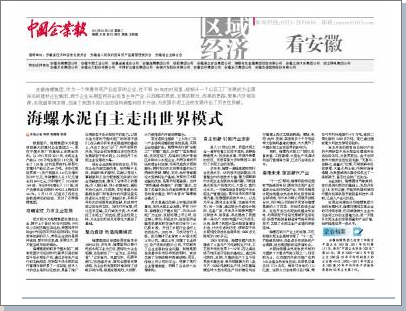 [中国企业报]海螺水泥自主创新走出世界模式 |