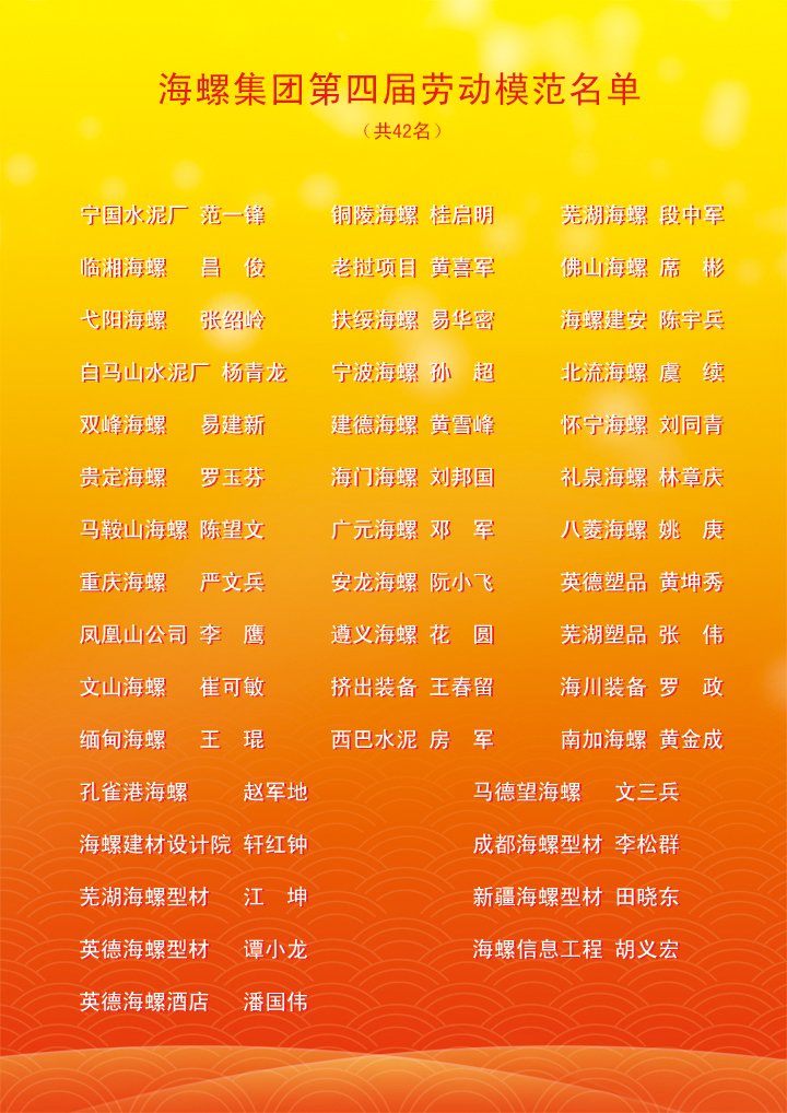 海螺集团第四届劳动模范名单