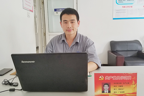 关俊伟,2010年11月加入中国共产党,2012年6月加入海螺,现任唐山海螺型材生产党支部委员、型材分厂厂长助理,负责混料生产、工艺管理等相关工作。 “做事先做人,万事勤为先”,是关俊伟的行为准则,作为一名年轻党员,他坚决服从党组织安排,认真履行岗位职责,较好地完成了各项生产目标任务,特别是在旺季保供和疑难攻关等方面充分发挥了党员先锋模范作用,受到了领导和同事的一致肯定。