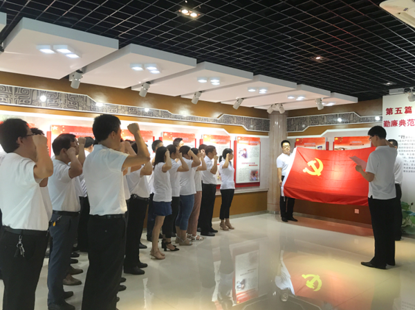 重温入党誓词 8月8日上午,院总支纪检小组组织院总支班子成员、各支委、关键岗位党员代表共38人,在资料中心四楼培训教室集中观看学习了廉洁教育片《四风之害》,教育片从近几年来大量违纪党员领导干部和典型案件入手,深刻分析了形式主义、官僚主义、享乐主义、奢靡之风产生的根源及其对党和事业的重大危害,从而警示党员领导干部要牢记“四风”之害,禁“四风”之欲,模范发扬和践行党的群众路线,作务实清廉的表率。