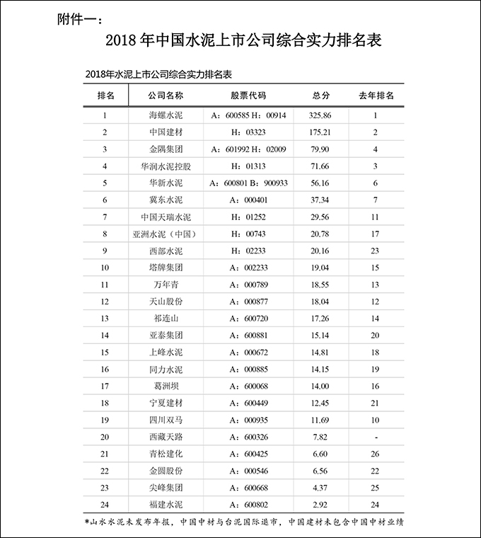 海螺水泥位居2018年中国水泥上市公司综合实力排名首位 |