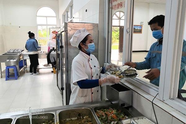 切断传播 阻隔疫情输入风险 中午时间是马德望海螺柬籍厨师Muth Davy(戴维)最忙碌的时候。为保证公司员工的健康安全,公司取消了食堂自助取餐,每天烧完菜之后,戴维要和同事们一起准备现场员工的餐盘,还要协助做好就餐人员的体温检测等工作。被问及柬新年期间的安排,戴维用流利的汉语说:“我和老公商量好了,听从公司的安排,今年过年不回家了,减少走动,对自己的健康负责,也是对大家负责。”