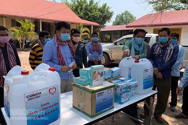 为驾驶员赠送防护用品 疫情之下,马德望海螺的生产经营并没有懈怠,“疫情期间有困难是客观现实,但不是放松管理的理由。”公司的干部员工积极优化销售服务、开展劳动竞赛、细排工程工期。一季度,马德望海螺水泥生产和销售超额完成预算,吨熟料综合电耗、吨熟料发电量、水泥粉磨工序电耗、熟料生产成本、水泥生产成本等关键指标较预算均实现了优化。 投桃报李 展现企业社会担当 湄澜同源,中柬同心。3月份,中国陆续派出医疗队抵达柬埔寨协助疫情防控工作,受到了当地政府和民众的热烈欢迎。 为了共同抗击新冠肺炎疫情,履行中国企业在当地的社会责任,也为了感谢地方政府对海螺的一贯支持,马德望海螺结合实际,主动与所在地政府联系,了解他们的需求,多方协调物资和物流资源,分别为马德望省政府和蒙多县政府送去了口罩、消毒酒精、消毒洗手液、大米、饮用水等物资。目前,这批防疫物资已经派发给了防疫一线人员,有效支援了当地的疫情防控工作。