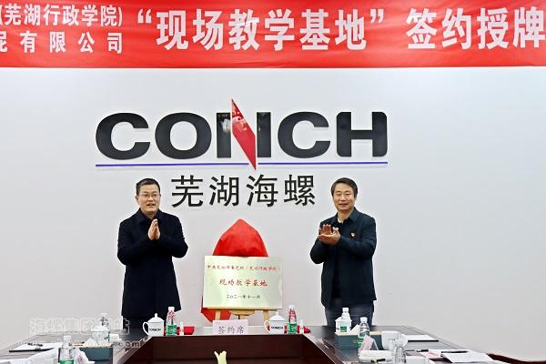 11月12日,芜湖海螺水泥有限公司与中共芜湖市委党校(芜湖行政学院)“现场教学基地”签约与揭牌仪式在芜湖海螺公司举行。市委党校副校长张勇、教育长胡沐,海螺水泥党委副书记刘田田、芜湖海螺党委书记汪哲伍及相关负责同志出席揭牌仪式。