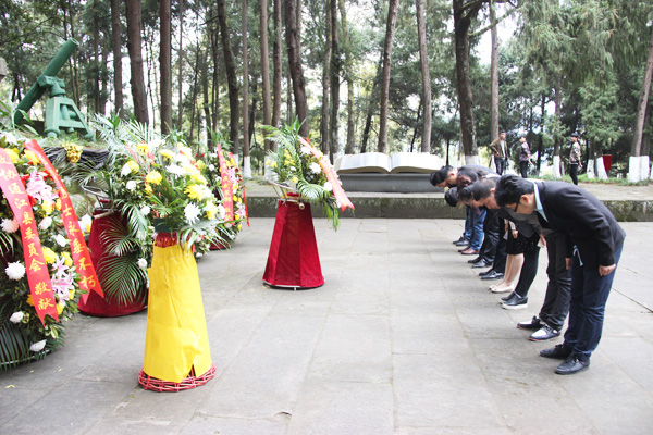 上午11时,巴中、南威两公司的员工代表们到达川陕革命根据地红军烈士陵园。在红军烈士集墓前,大家向烈士们鞠躬、默哀、敬献花圈,向保卫国家而长眠于此的革命烈士表达无尽的哀思和敬仰,同时对陵园部分区域进行了清扫。