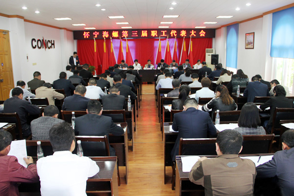 上午9:00,在庄严的国歌声中,怀宁海螺第三届职工代表大会正式开幕。