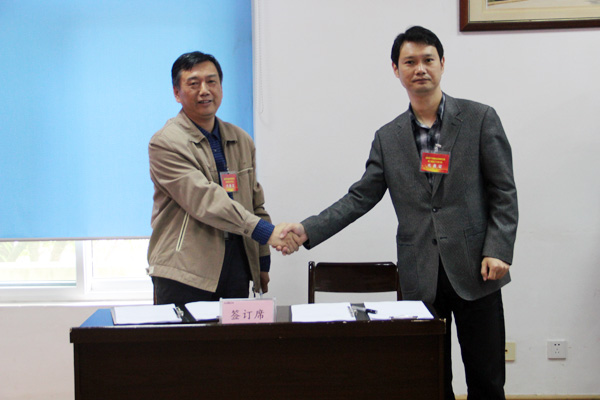 会上,华玉舟、庞士况同志分别代表企业方和职工方签订了《集体合同》及《工资集体协商专项合同》。
