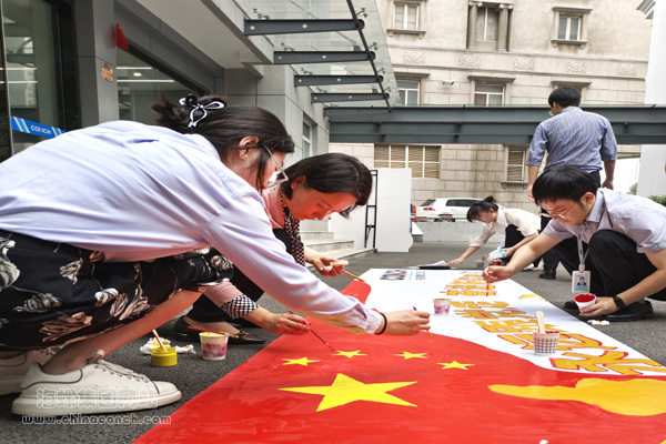 在“共绘蓝图”国庆主题涂鸦活动环节,大家拿起画笔、齐心协力绘出对祖国的祝福,同时体验到亲密无间分工合作的快乐。