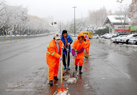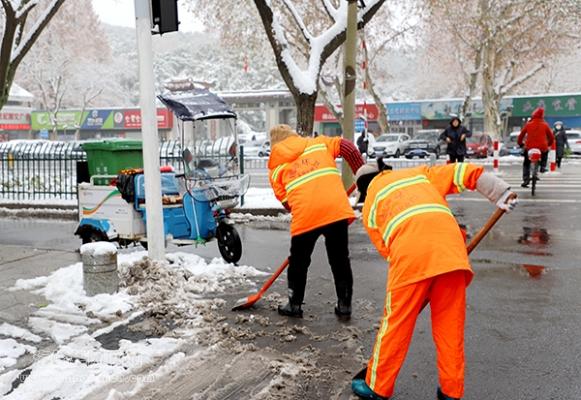 近日,一场风雪覆盖了芜湖,严重影响了广大市民交通出行,19日清晨,环卫工作者们早早来到邢家山社区街道上拿着除雪铲、铁锹、扫帚等清扫路面积雪,保障附近居民的安全出行。