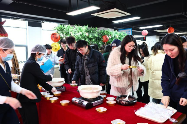 公司食堂特别推出的的“柿柿如意”汤圆外皮柔软,内馅甜美,寓意着生活事业圆圆满满,大事小事事事如意。员工们一边品尝美味的汤圆,一边交流着谜题谜底,气氛十分温馨融洽。活动结束时,大家仍意犹未尽,纷纷拍照留念,记录下这美好的时刻。