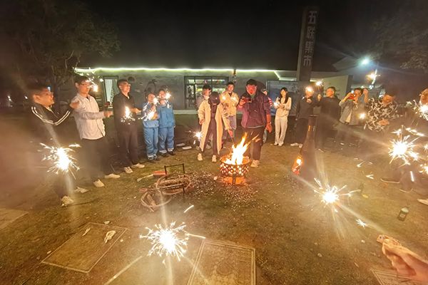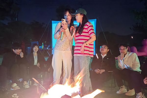 随着篝火越燃越旺,欢快的鼓点骤然响起,击鼓传花游戏瞬间点燃全场热情。象征幸运的“包袱”在人群间飞速穿梭,随着鼓点节奏时缓时急,大家或是眼疾手快迅速传递,或是故意“刁难”邻座,现场一片欢笑声。当鼓点戛然而止,手握“包袱”的“幸运儿”在众人的起哄声中走上前,有人一展歌喉,用嘹亮歌声唱响经典老歌,有人拉上三两好友,载歌载舞,围观同事纷纷拿出手机记录精彩瞬间,掌声与喝彩声中,平日严谨认真的青年们尽情释放活力,让欢乐的氛围在火光中无限蔓延。