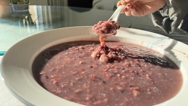 清晨,海拔三千多米的八宿还浸在冬日的清冽里,而八宿海螺食堂的窗户早已晕开一团温暖的雾气。雾气里,氤氲着一股平原地区熟稔的醇厚甜香——那是糯米、红豆、红枣、花生在文火慢炖中交融的气息,是腊八粥的味道。几位早到的藏族同事循着香气驻足,好奇追问:“今天的早饭,怎么这样香?”