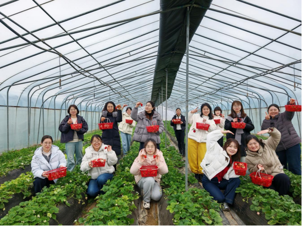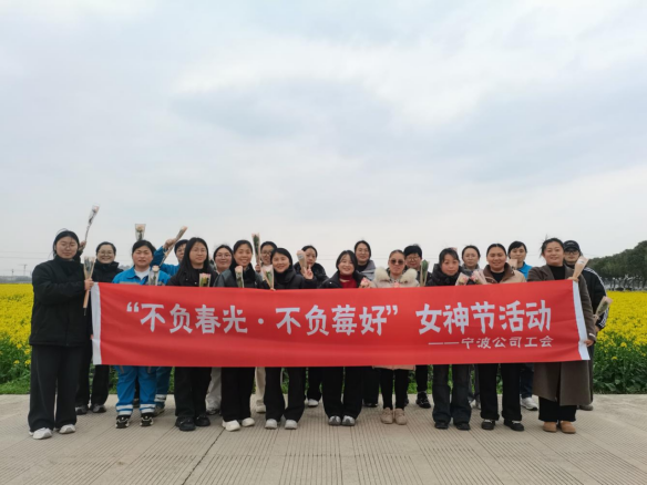 宁波型材公司33名女职工开启一场“不负春光,不负莓好”的田园之旅。大家徒步前往奉化爱歌顿农场,草莓大棚里,颗颗红艳欲滴的草莓挂满藤蔓,女神们提篮采摘、拍照打卡,尽享春日甜蜜。随后,队伍徒步至庙后周村油菜花田,金浪翻涌的花海中,大家铺开野餐垫分享美食,在欢声笑语中放松身心,定格灿烂瞬间。