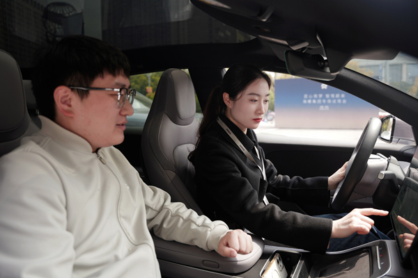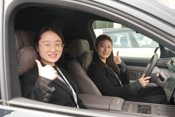 午休时间,总部大厦门前人头攒动。科技感十足的车型、智能化的座舱体验,让原本安静的午间时光一下子热闹了起来。