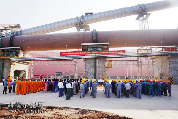 8时48分,缅甸工业部长U Maung Myint宣布缅甸海螺5000t/d水泥熟料生产线一次性点火成功!