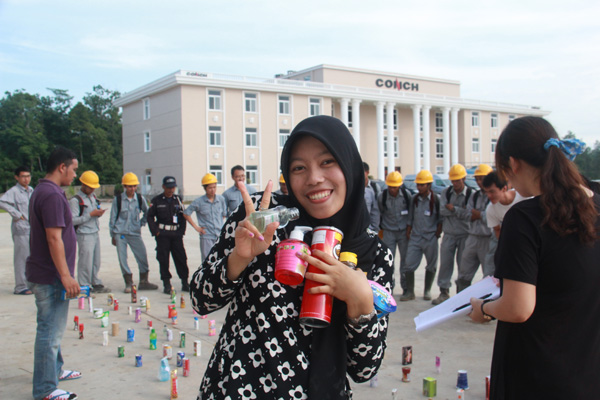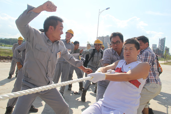 最先出场的是矿山分厂队和制造分厂队,矿山分厂队由于精心组织和充足的赛前热身,队员们进入状态较快,伴随着现场“加油,加油……”声,队员们个个越战越勇,“加油,加油!”、“矿山!矿山!TAMBANG!TAMBANG!”,“制造!制造!MANUFACTURE!MANUFACTURE!”呐喊助威声响彻厂区,矿山分厂队首战告捷,并一路过关斩将,奠定头名位置。在随后的比赛中,发电分厂、职能二队依次脱颖而出,分别获得第二、三名。“参与比赛,更多的是竞争背后所体现出来的团队精神和全局意识,只有稳扎稳打、精诚合作才能赢得比赛”,赛后,矿山分厂队副领队吴佳奕表示。