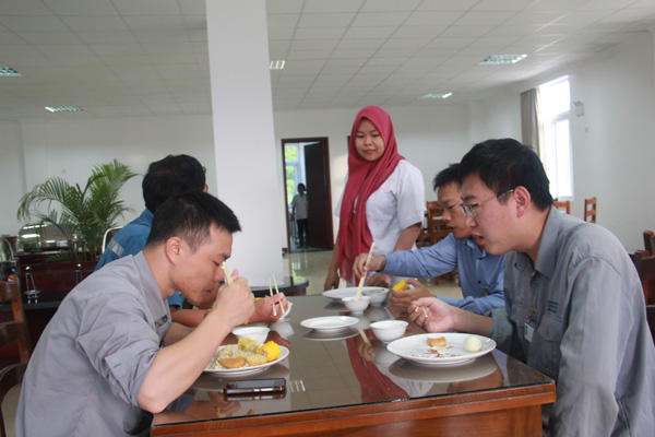 在元旦当日,专家公寓餐厅正式开张,公司中国籍员工和华人翻译人员在整洁舒适的就餐环境中迎接新年的到来。