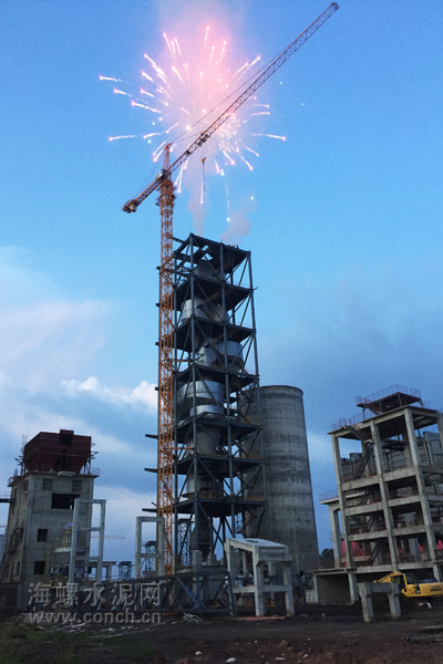 南加海螺二期3200t/d熟料生产线预热器顺利封顶