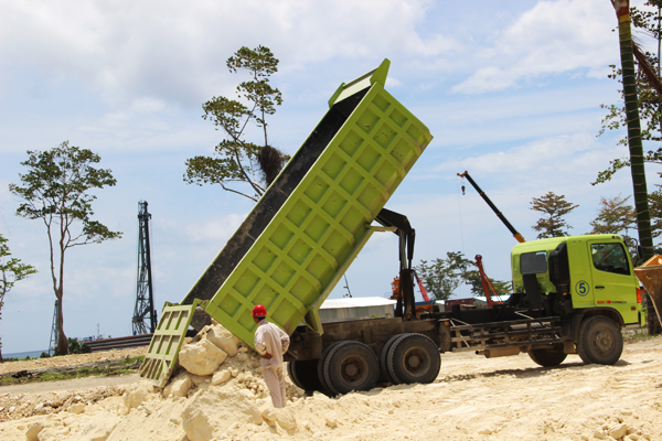 西巴项目位于马诺夸里县马如尼村,交通便利,石灰石资源储量丰富,品质高,项目选址适合建立深水码头,具备较好的建设条件,但砂岩资源是困扰项目建设的一道难题。项目组足迹踏遍马诺夸里山山水水,历时二个多月,终于在南马诺夸里县找到砂岩矿。而且该点位于紧临海岸,水运条件优越,成功解决了资源这一难题。