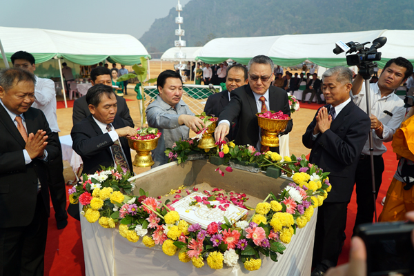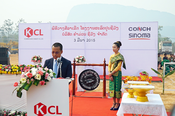 SCG集团老挝项目总体规划3条日产5000吨水泥熟料生产线,首期建设一条日产5000吨水泥熟料生产线(简称KCL1),项目建设取得了当地政府的重视和民众的支持,参加开工典礼的有老挝自然资源与环境部部长Junsorn先生、矿产资源与能源部部长Sinawa先生、泰国驻老挝沙湾拿吉总领Boonrong先生等多位重要嘉宾,甘蒙省省长Odai先生及SCG水泥集团总裁Pichit先生出席开工典礼并发表讲话。