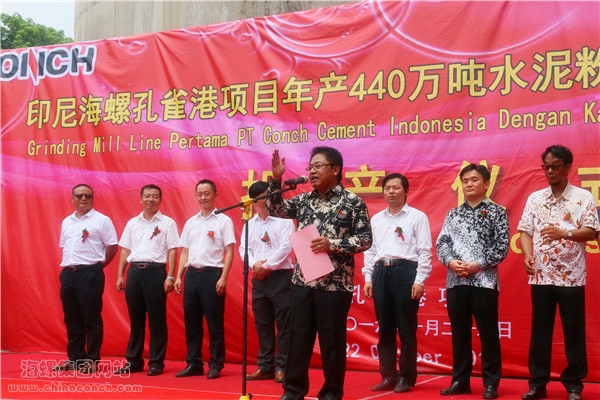 印尼海螺总经理吴自龙代表印尼海螺孔雀港项目向出席仪式的各级领导和嘉宾表示热烈欢迎!他回顾了孔雀港项目的建设历程,表示,首台水泥磨机一定会在最短时间内达产达标,在孔雀港这片美丽的土地上焕发出勃勃生机和活力,为西爪哇地区经济发展、基础设施改善和村民生活水平提高发挥重要作用。