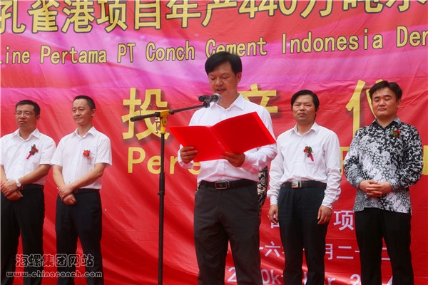 印尼海螺孔雀港项目副总经理任晓保主持庆典仪式