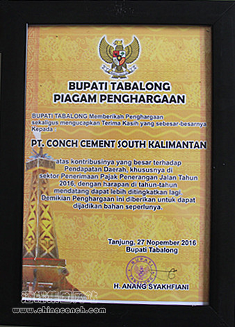 作为集团海外战略的“排头兵”,南加海螺公司一直坚持严格的标准,在全力实现年度各项生产经营目标的同时,努力践行企业社会责任,促进社企关系进一步融洽,赢得了社会各界与当地政府的称赞与认同。南加海螺公司一定会以本次政府鼓励为契机,进一步树立海螺形象,为兑现“海螺水泥建设美好印尼”的庄严承诺而稳步迈进。