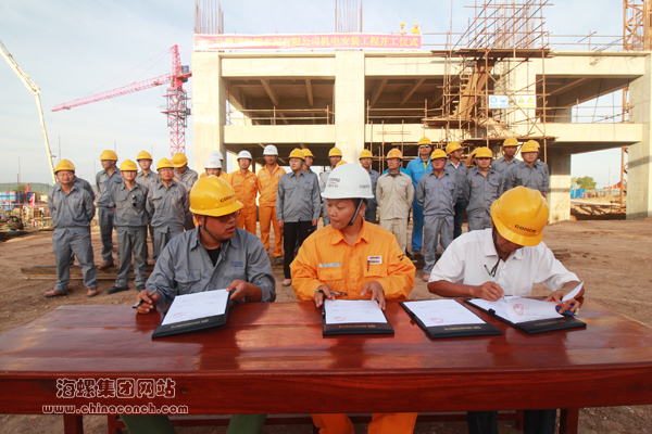 下午5时18分,马德望海螺部分干部员工、海螺设计院、工程审计部驻厂人员、海外事业部驻厂人员、迈世纪监理公司、邯郸中材项目部、上海宝冶项目部、北京中外运等单位参加了安装工程开工仪式。