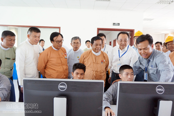 下午3:00,省委书记Dr.Zaw Myint Maung一行参观考察了公司中控室、水泥生产线及燃煤电站。