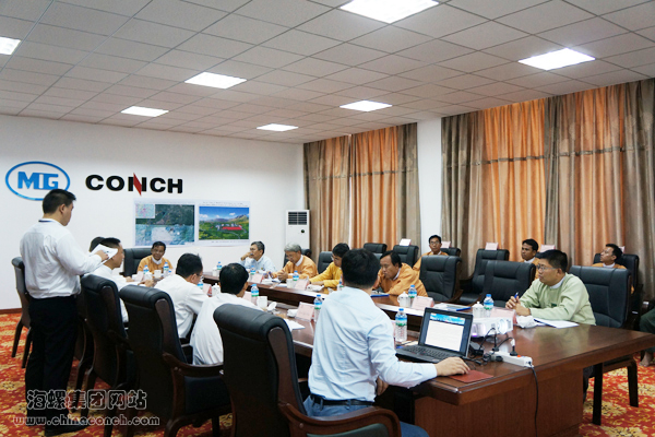 现场参观考察结束后,省委书记Dr.Zaw Myint Maung一行在缅甸海螺专家公寓会议室听取了缅甸海螺专题汇报。