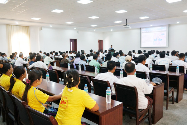 现场参观结束后,在办公楼三楼会议室,缅甸海螺向村民详细介绍了缅甸海螺发展历程、先进生产工艺、环保技术装备、公司发展带来的经济社会效益及曼德勒项目规划情况和未来预期。广大村民听取了介绍,并发表感言,一致认为缅甸海螺公司技术先进,为第一次看到这样一个现代化和花园式水泥厂感到高兴,非常满意此次参观之行,并表示要大力支持曼德勒项目建设。
