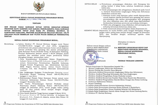 印尼中央政府为南加海螺颁发正式林地证