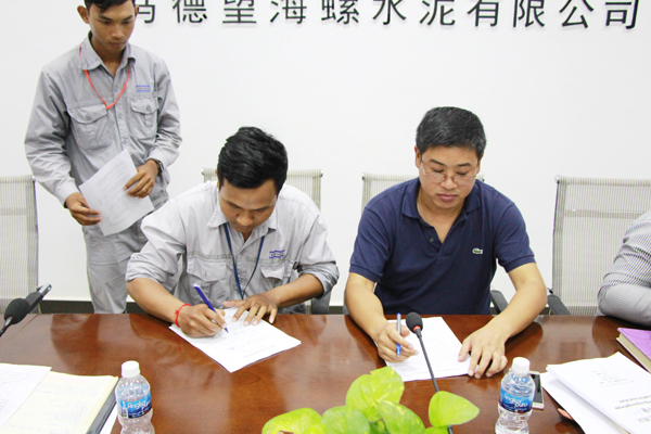 公司常务副总经理翁长祎作了培训动员总结。指出马德望海螺公司柬籍员工赴中国培训工作在经过多次酝酿和研讨后,第一批8名员工即将到中国接受为期3个月的跟班培训,希望各位要结合既定的培训计划,认真主动对待每一天的学习,同时要带着任务去学习,要边学习边思考,做好每一天的学习记录和学习体会,切实提高自己的岗位技能和管理水平,回来后做好传帮带,帮助公司其他柬籍员工共同提高、快速成长,促进公司早日实现用工本地化目标。