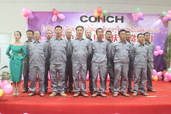 琅勃拉邦海螺矿山分厂的一曲《团结就是力量》揭开了晚会的序幕。