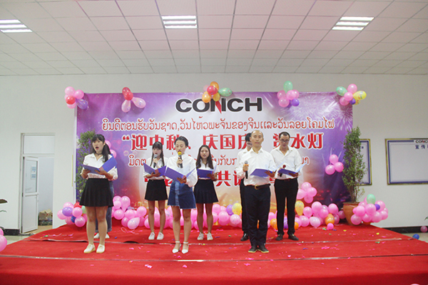 中国国庆节、中秋节及老挝水灯节齐至之际,10月4日晚,琅勃拉邦海螺在项目大食堂举办了庆国庆、迎中秋、赏水灯主题文艺晚会,公司干部员工、项目施工单位及周边村民代表约300余人参加了这次晚会。