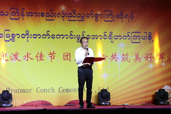晚会在缅甸海螺总经理李鑫同志的致辞中正式拉开帷幕。他简要回顾了区域年度工作情况,并向大家表示衷心的感谢和诚挚的祝福。希望在新的一年里众志成城,再接再厉,不断提升经营管理水平,推进新项目建设,共创更大业绩。