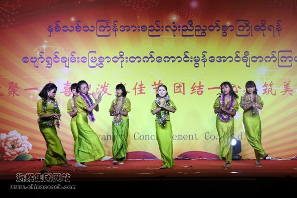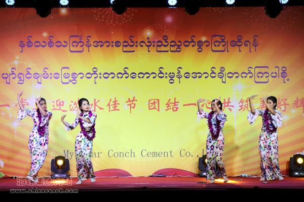 缅甸海螺及区域内各单位领导、中层管理人员、广大员工及家属、当地村民等欢聚一堂,共同欣赏缅甸海螺员工及家属自编自导自演的精彩节目,喜迎新年泼水佳节!