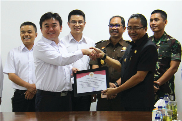 2018年6月21日,大巴隆县县长H.Zony Alfianoor先生带领县警察局、军队、法院、检察院、教育局及相关村镇、学校负责人一行35人到南加海螺参观调研,并参加“南加海螺奖学金和工业教育基地”授牌仪式,南加海螺总经理吴自龙率公司班子成员热情接待了县长一行。