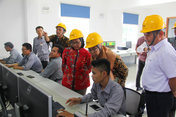 下午15:00,Farah Ratna Dewi女士一行现场参观考察了南加海螺公司中控室、水泥生产线现场等,了解项目生产及运行情况。