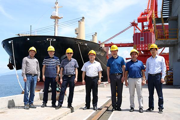 在码头现场,曾国华介绍了公司码头建设和运营情况,公司码头选址优良,设备先进,可靠泊3万吨级货船。在看到公司码头繁忙的卸煤景象时,胡清一行对公司先进的装卸工艺流程和完善的物流系统表示赞赏,同时指出,码头作业一定要做好安全防护工作,确保安全生产。