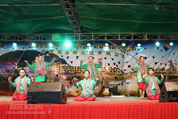 销售处和经销商联合选送一支现代舞,以昂扬的旋律、欢快的节奏展现了海螺与经销商精诚合作、互利共赢的良好局面;经典影视《大话西游》也被员工搬上舞台,语言的障碍丝毫不影响节目的精彩,观众席上中柬员工笑声不断;压轴节目舞蹈串烧《欢乐颂》,通过精心的编排,把中柬两国观众耳熟能详的歌舞混剪,再次燃爆全场,能歌善舞的柬埔寨观众更是直接加入了舞蹈的队伍,台上台下连成一片欢乐的海洋。