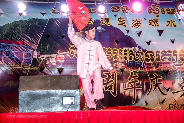 痴迷中国文化的柬籍员工陈宏新和行虔将《太极扇》舞地虎虎生风,荡气回肠的中国功夫配乐和飘逸洒脱的太极服,无不透露着中国文化的魅力。