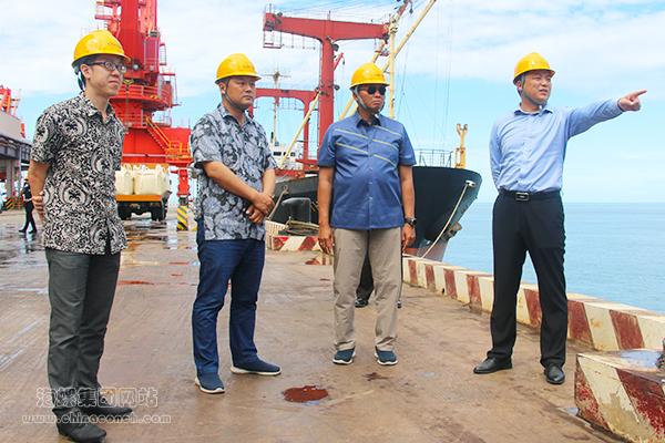 20日上午,Moechgiyarto中将分别到公司码头、生产现场考察调研。孙中林介绍,公司码头选址优良,设备先进,可靠泊3万吨级货船,月吞吐总量达20万吨。Moechgiyarto中将称赞,公司生产工艺流程先进、生产规模庞大,花园式工厂更是令人印象深刻。印尼政府会一如既往地支持海螺在当地的投资和发展,希望北苏海螺加强与当地警方联系,通过强化警企合作共创安全稳定的经营环境。