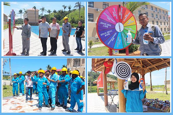 为更好营造春节气氛,促进中印籍员工交流融合,让广大印尼籍员工了解中国传统文化,增强企业凝聚力,1月25日,大年初一,公司组织了“扎飞镖、幸运大转盘”娱乐活动。同时,结合印尼全年如夏特点,公司还组织开展了“喜迎新春、泳动海螺”游泳比赛。