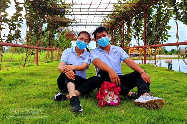 办公室的赵云斌和财务处的程冬雪是公司的柬语翻译,也是大学同学,两人一起牵手出国,一起相伴来到海螺,在同事们的见证下走进婚姻的殿堂,是让人羡慕的一对幸福小夫妻。
