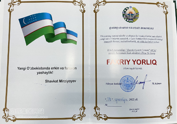 获得“乌兹别克斯坦共和国成立30周年突出贡献者”“卡什卡达里亚州2022年度优秀外资企业”等荣誉