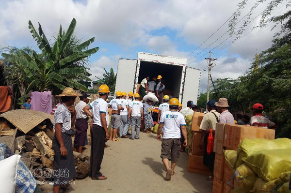 2016年8月,曼德勒地区发生水灾,缅甸曼德勒海螺向受灾群众捐赠赈灾物资