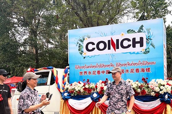 4月14日下午,节日当天,琅勃拉邦一下就热闹了起来,拜佛、浴佛、泼水、栓线、布施、堆沙、放生、游行等各类活动轮番上演,人们的欢呼声、掌声和泼水声交织在一起,仿佛整个琅勃拉邦城都要被人们辞旧迎新的欢乐气氛所淹没。装扮着海螺标识和佛历2566年祝福的花车领头,60名身穿海螺文化衫的巡游队伍慢行着经过琅勃拉邦著名的法国街,街边围观的人群熙熙攘攘。“快瞧,那是我们中国企业的队伍!”一名中国游客手指海螺水泥游行方队激动地说,“我知道你们海螺水泥,在这里能够看见中国自己的企业,感觉很亲切,也很自豪。”