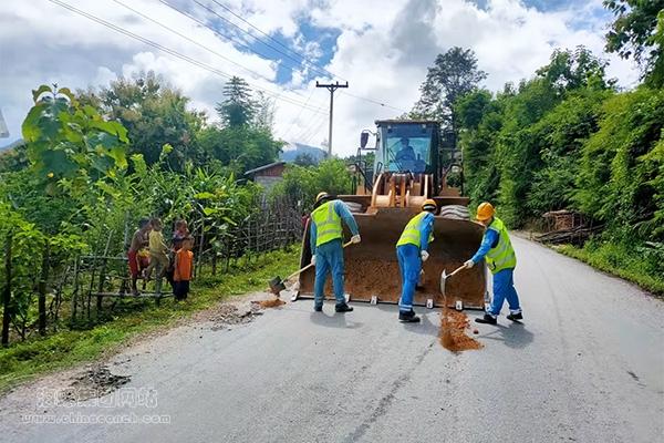 琅勃拉邦海螺至13号公路之间有21公里的社会道路,在这条路上,经常可以看见身着“海螺蓝”的员工和带有“CONCH”标志的大型机械在作业。老挝作为以农业为主的国家,工业、制造业以及基础建设相对薄弱,琅勃拉邦海螺积极履行社会责任,每年对该道路进行修缮,仅其中一次道路修缮,就出动人员229班时,反铲、装载机、矿车等148台班,使用碎石等物料2449吨,柴油5300余升,历时33天,累计修整路面2100平方米,极大方便了沿线运输车辆和人员通行。