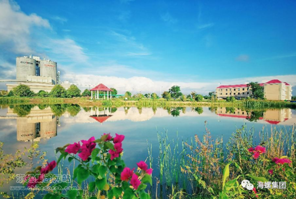 走进马德望海螺厂区,绿水环绕,青山相倚,花草掩映成趣,人工湖埂和绿植共同组成的“CONCH”标志在卫星图中也十分明显,巧妙的设计使得自然和人文景观相融极具特色,湖中成群的野鸭游过,一幅人与自然和谐共生的美丽画卷徐徐展开。